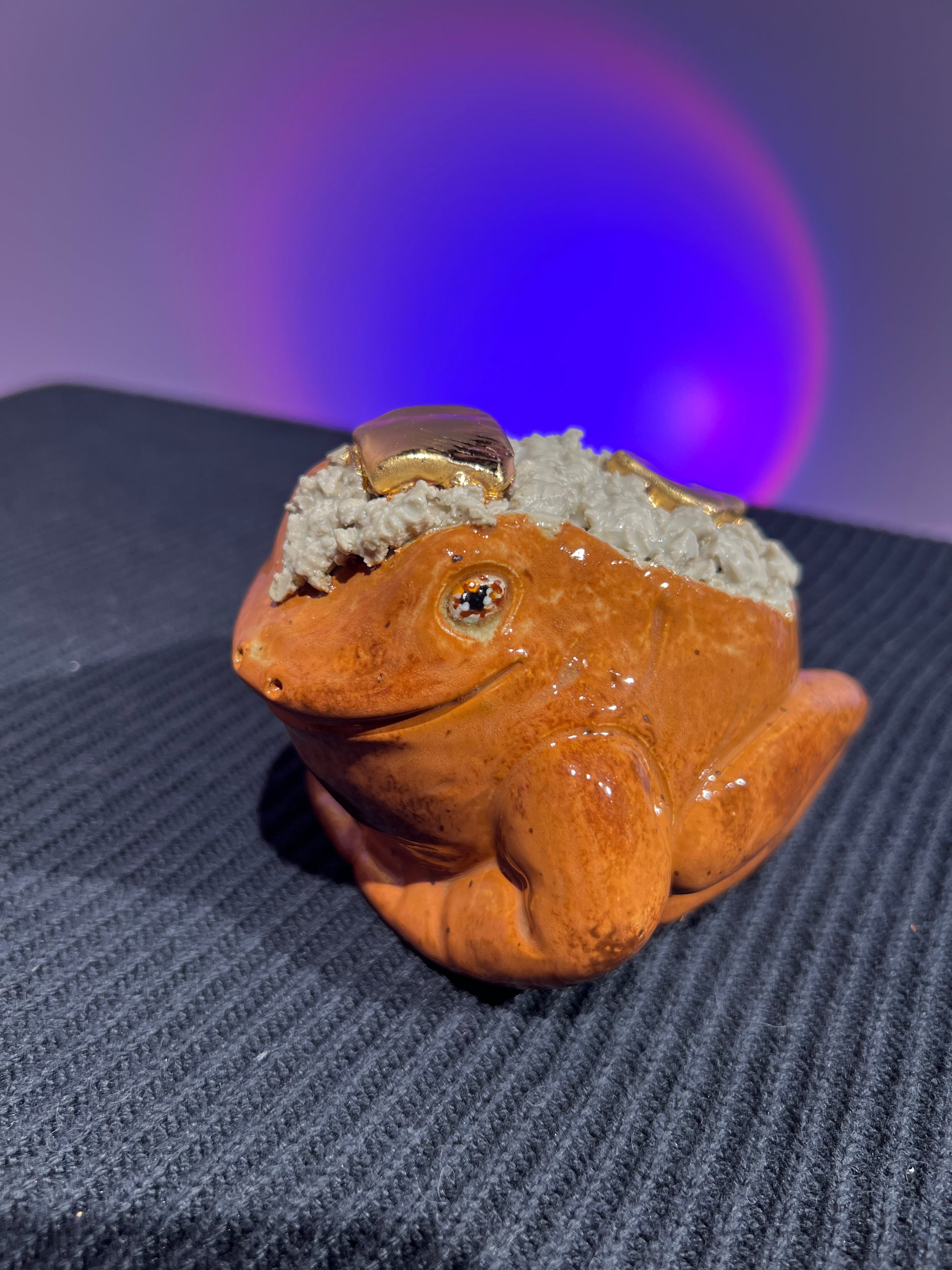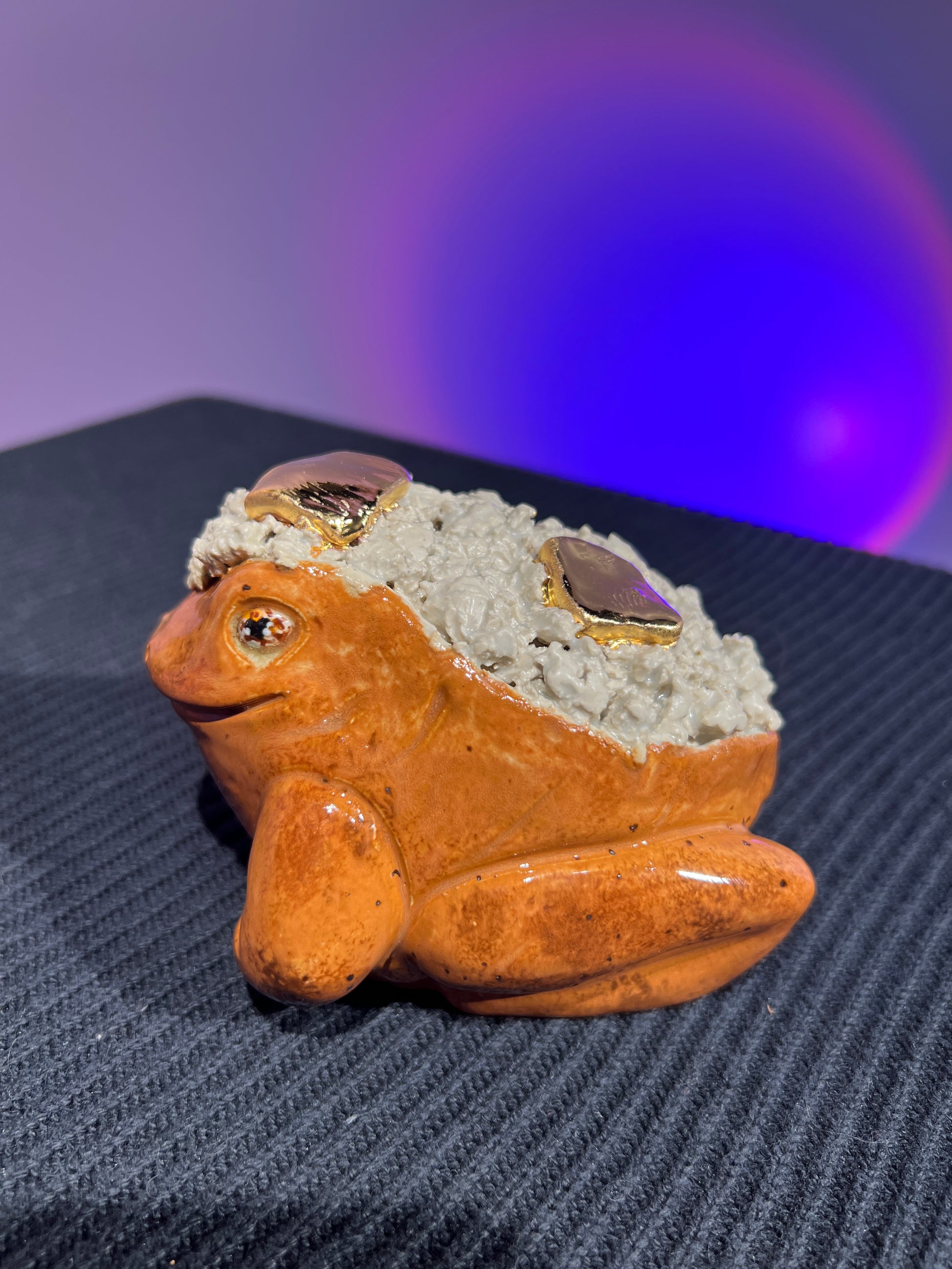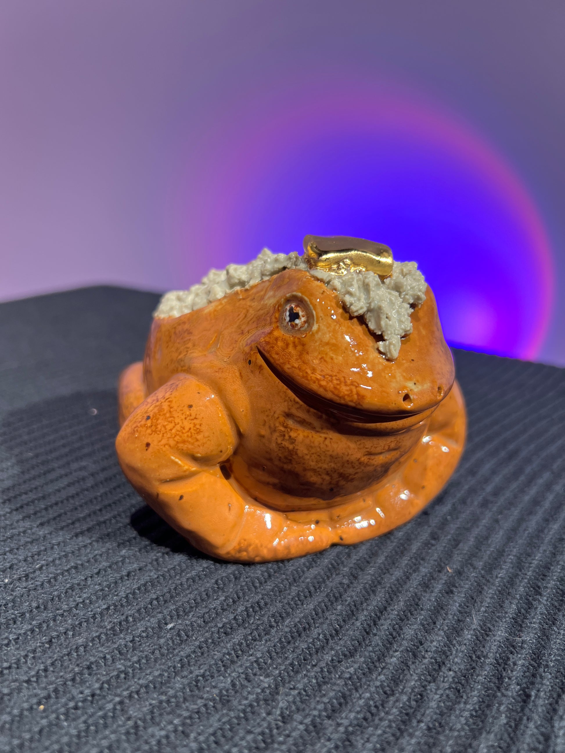 Each frog is a hollow cast from the pottery molds we created, and I always give them a little something extra during the sculpting stage. This Lil’ Frog is safe to take outdoors, but will live happiest inside. He should definitely be brought indoors for freezing temperatures to avoid potential breakage.