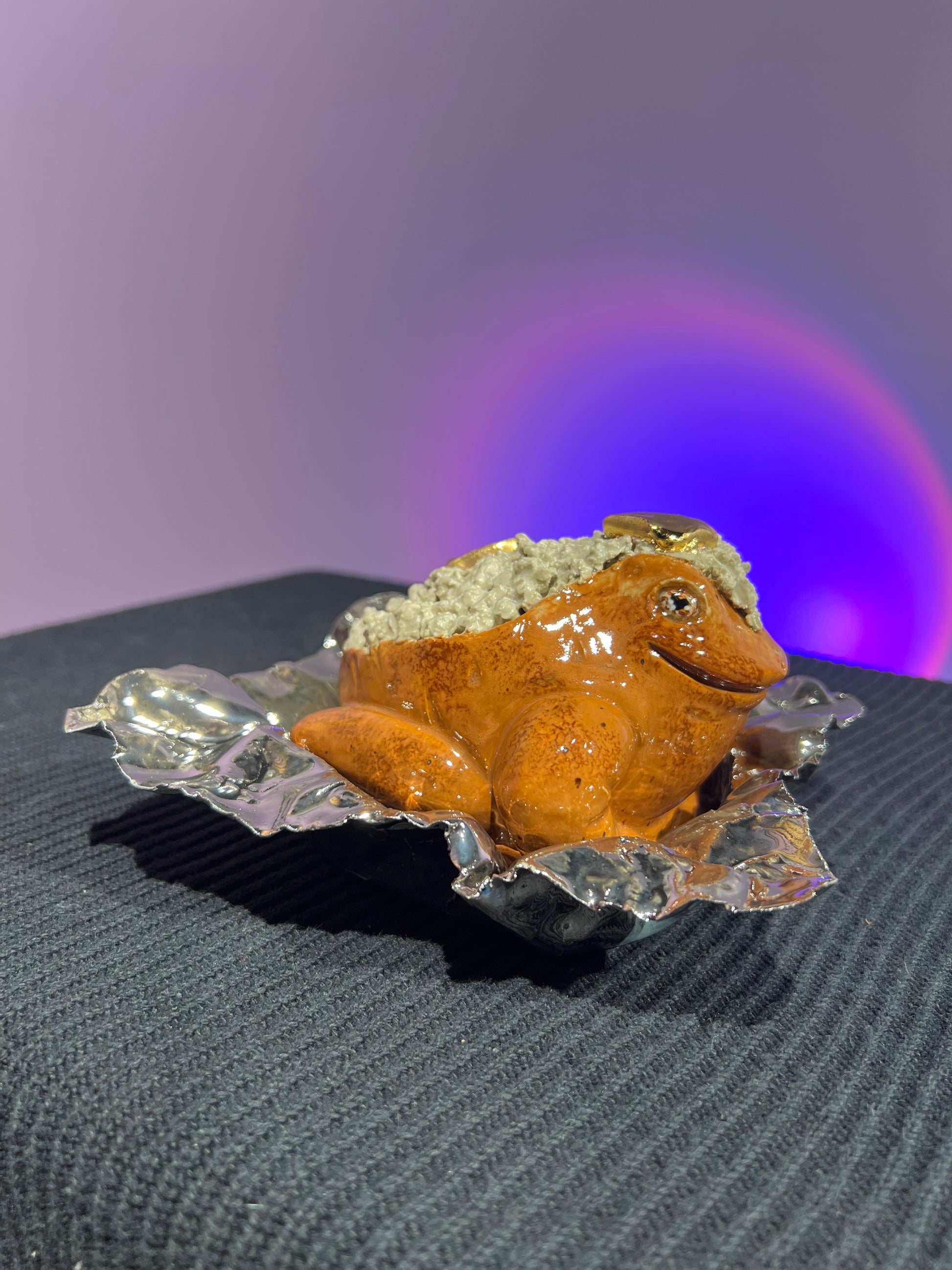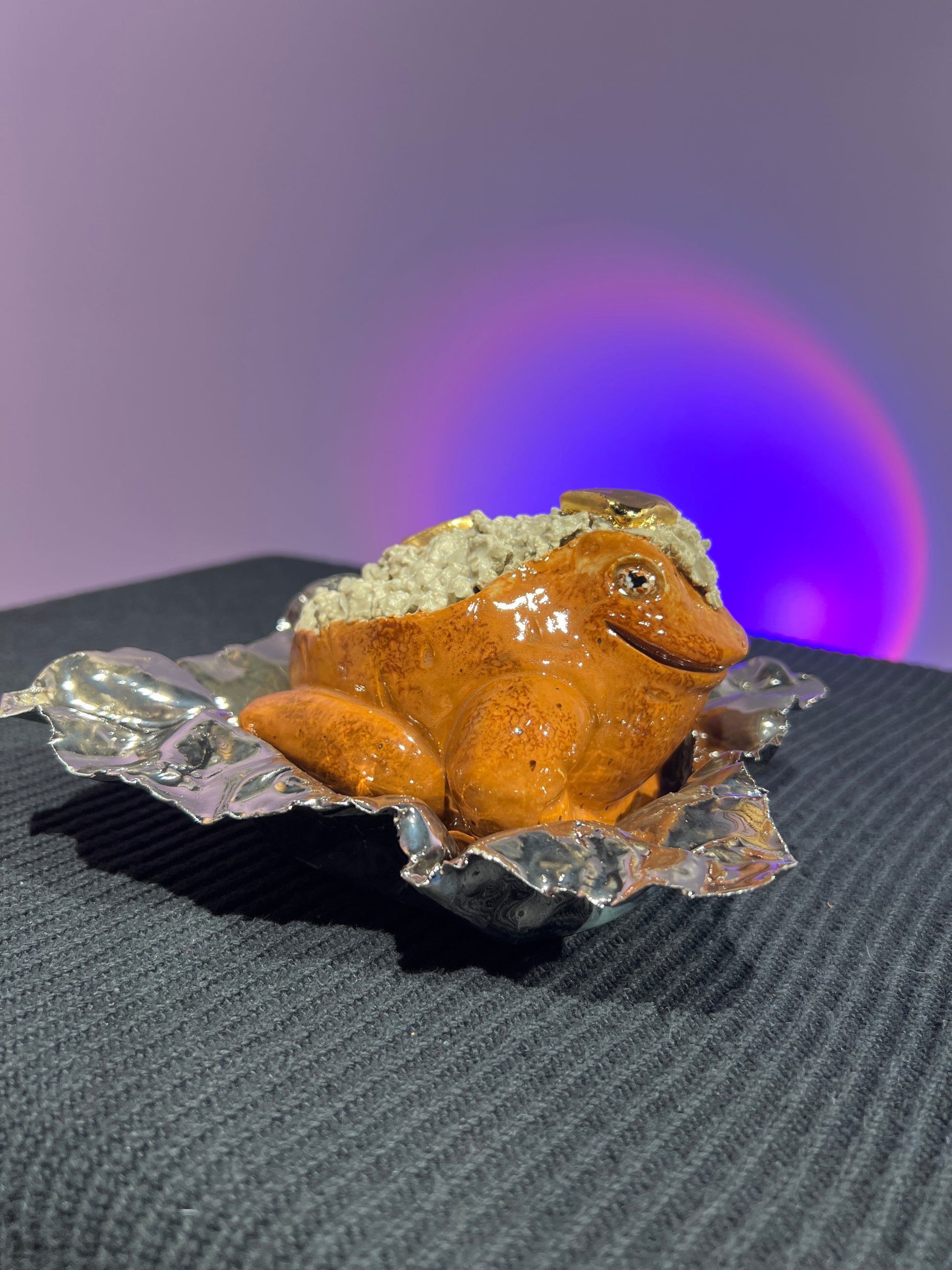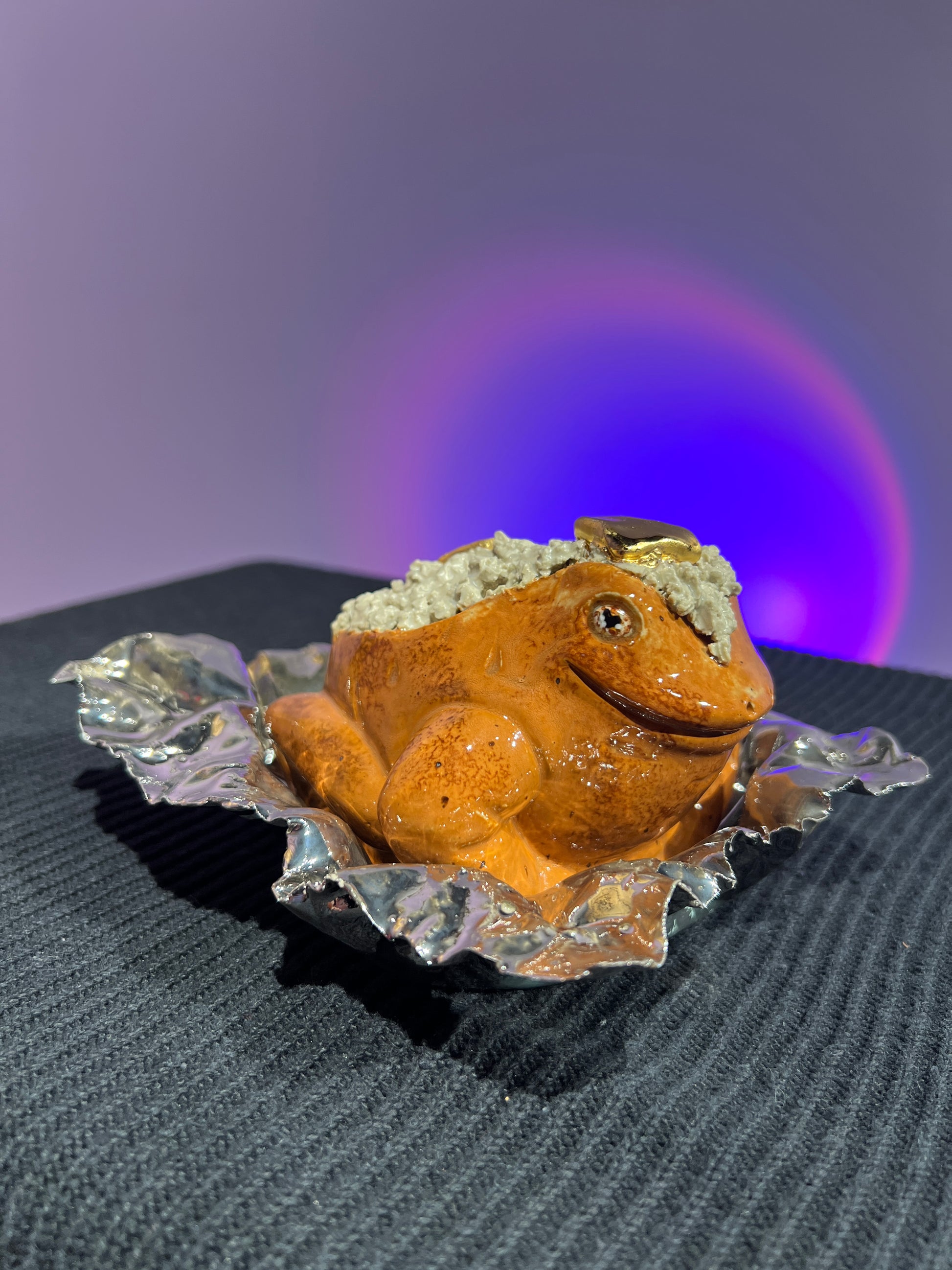 Each frog is a hollow cast from the pottery molds we created, and I always give them a little something extra during the sculpting stage. This Lil’ Frog is safe to take outdoors, but will live happiest inside. He should definitely be brought indoors for freezing temperatures to avoid potential breakage.