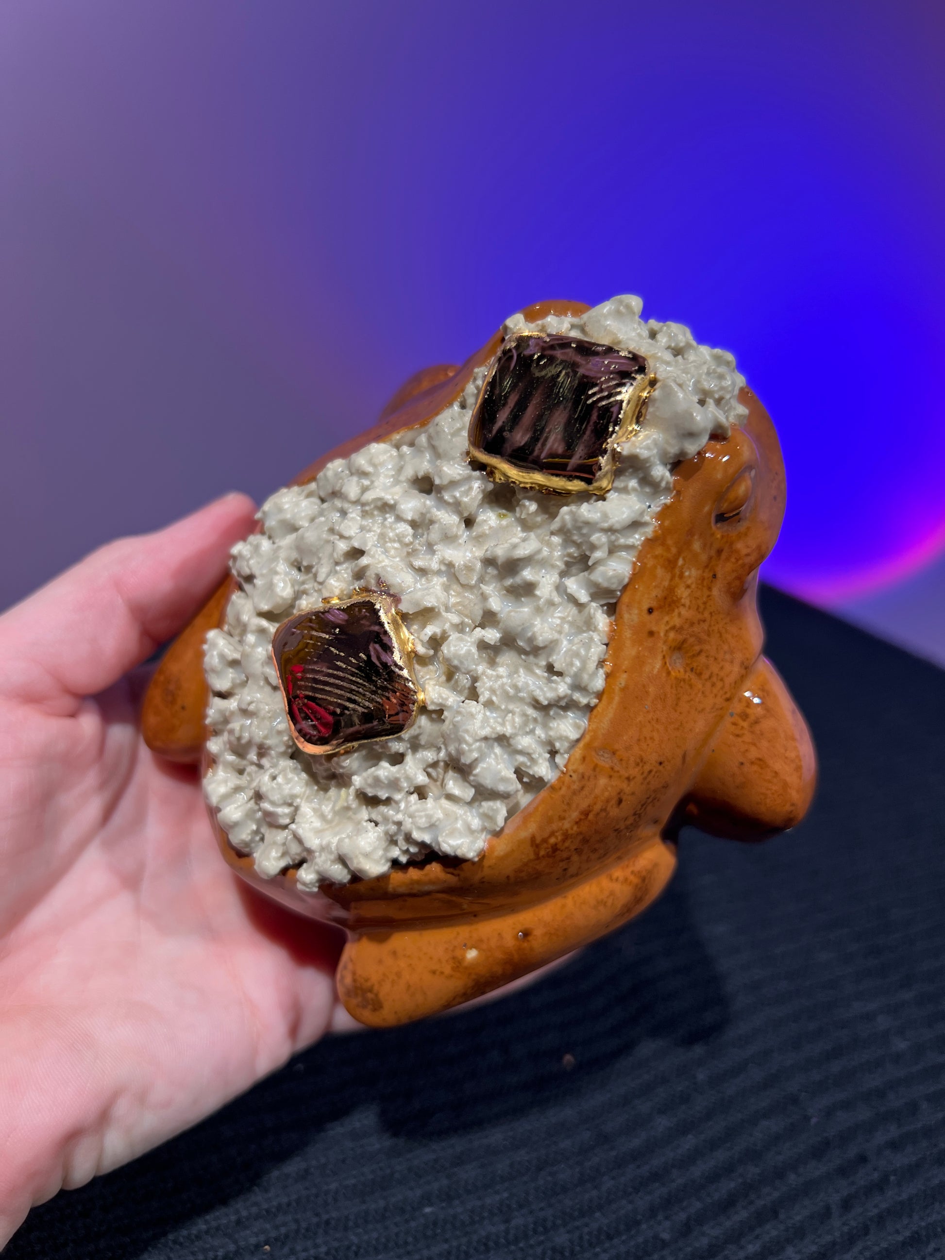 I document each piece of pottery and its condition before it leaves for its new home. I pack each item very carefully with ample cushion, double boxes, and "Fragile!" stamps on the parcel. I am not responsible for damages that occur through shipping and delivery. I insure every package I ship! If you receive a broken frog, please contact me immediately and keep all packaging!