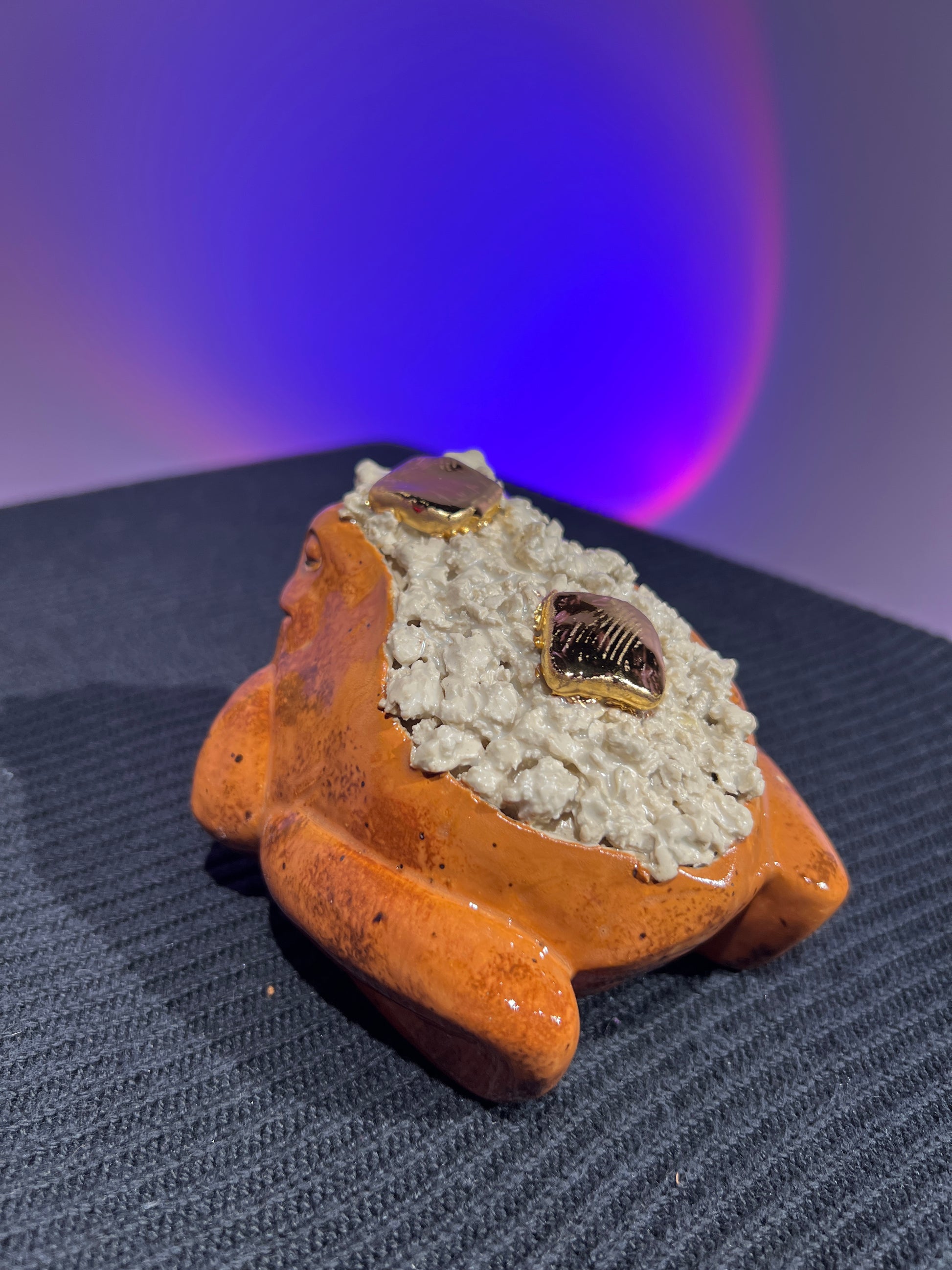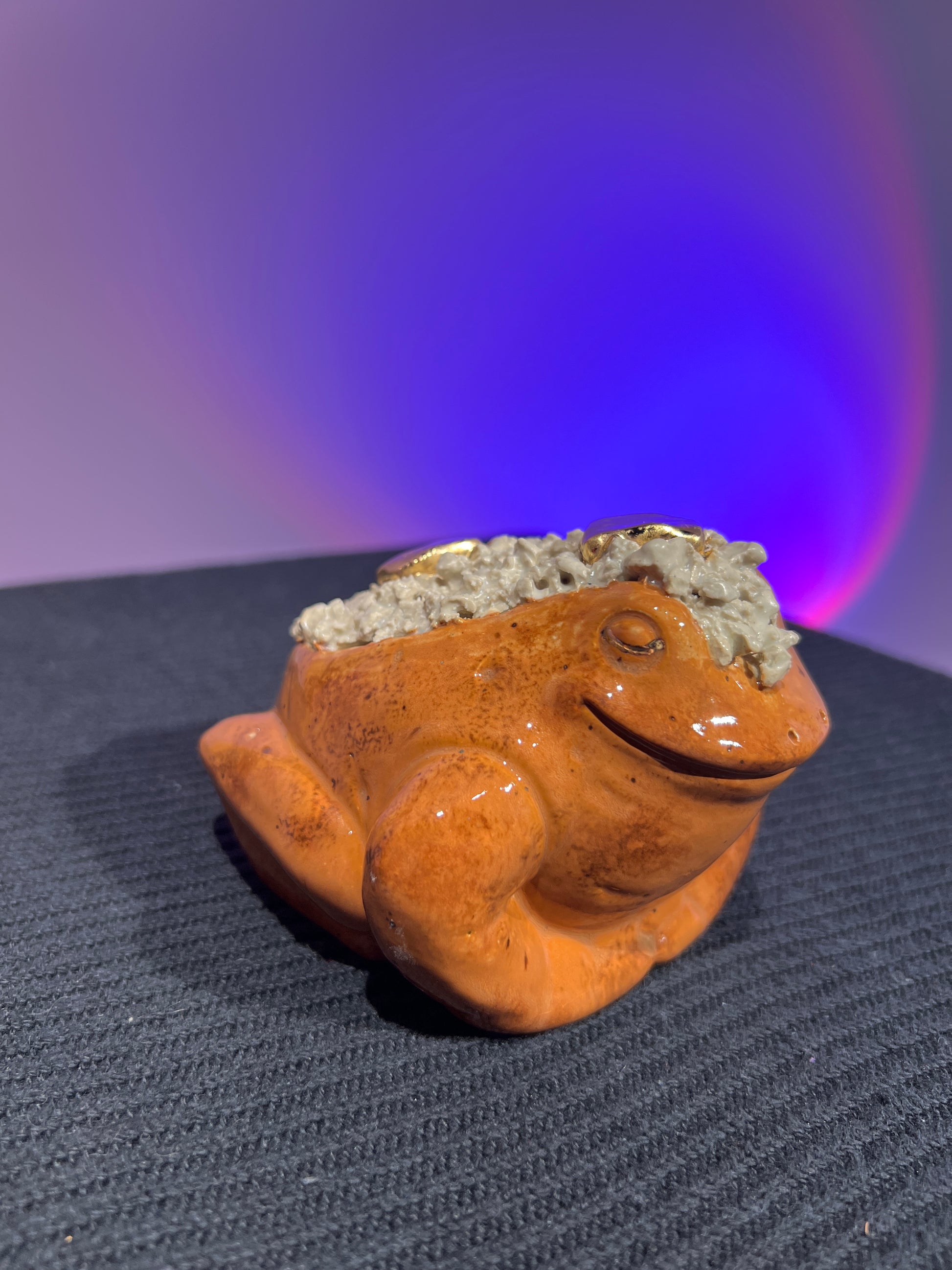 Each frog is a hollow cast from the pottery molds we created, and I always give them a little something extra during the sculpting stage. This Lil’ Frog is safe to take outdoors, but will live happiest inside. He should definitely be brought indoors for freezing temperatures to avoid potential breakage.