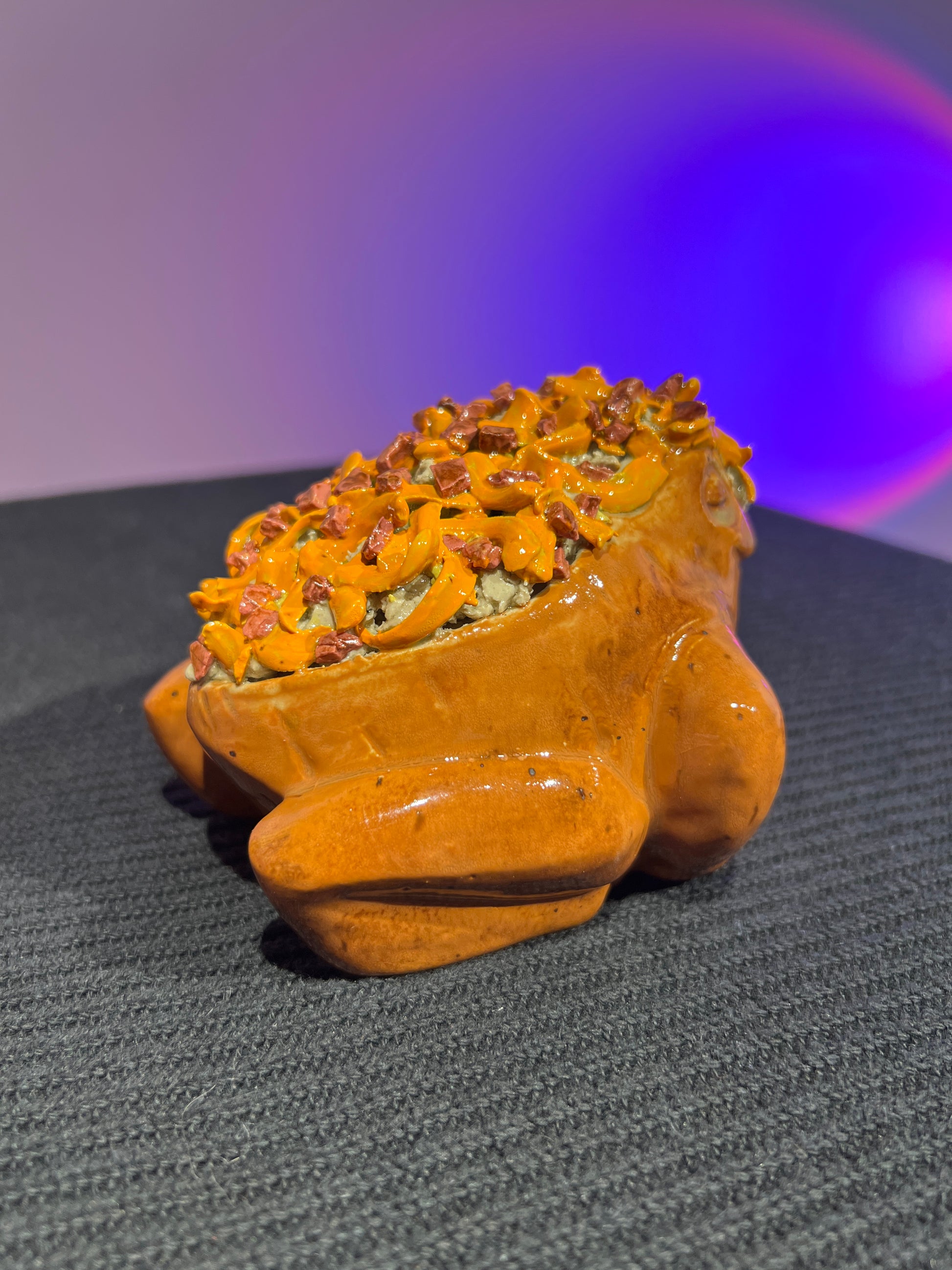 I document each piece of pottery and its condition before it leaves for its new home. I pack each item very carefully with ample cushion, double boxes, and "Fragile!" stamps on the parcel. I am not responsible for damages that occur through shipping and delivery. I insure every package I ship! If you receive a broken frog, please contact me immediately and keep all packaging!