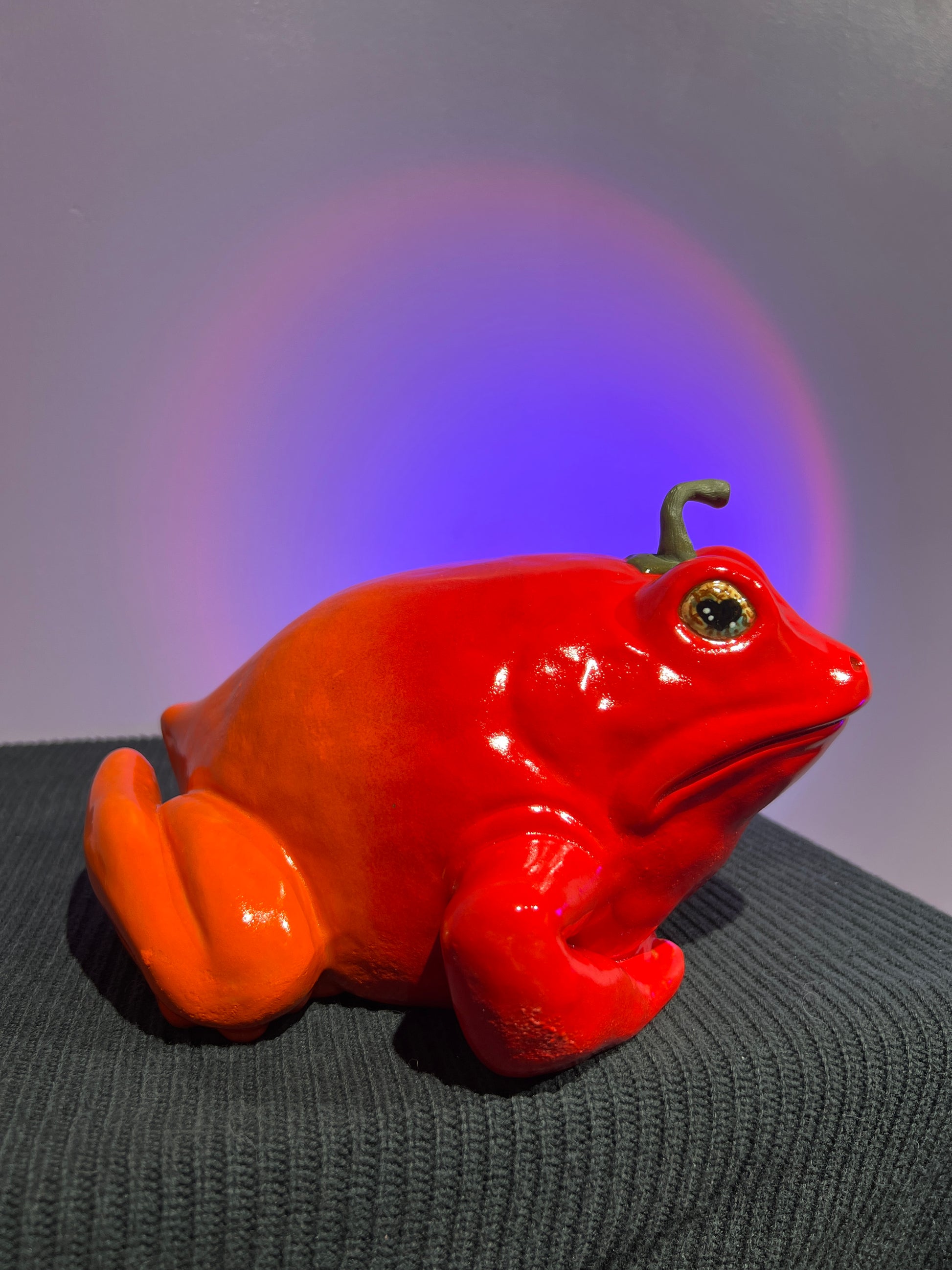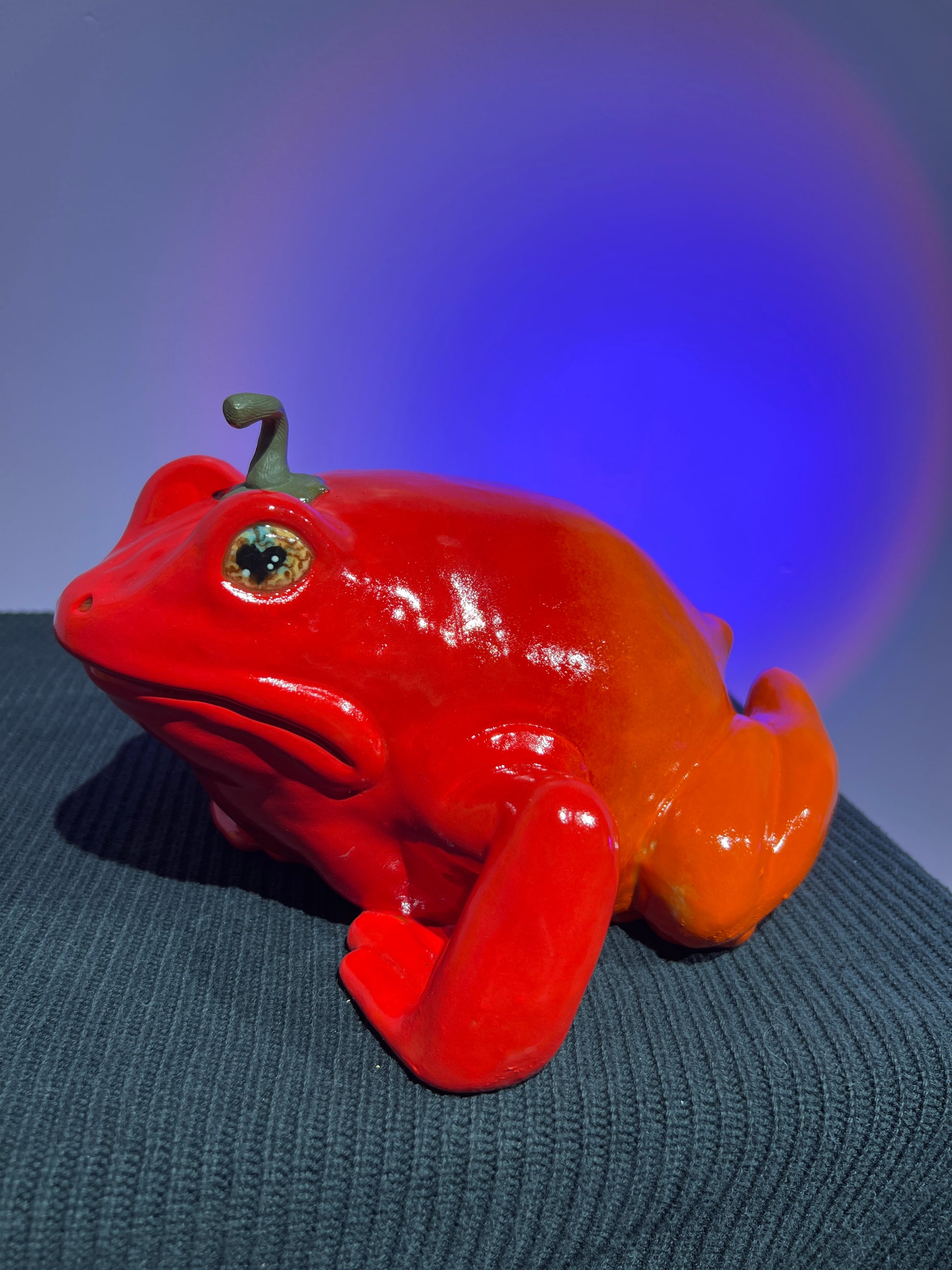 Each frog is a hollow cast from the pottery molds we created, and I always give them a little something extra during the sculpting stage. This Lil’ Frog is safe to take outdoors, but will live happiest inside. He should definitely be brought indoors for freezing temperatures to avoid potential breakage.