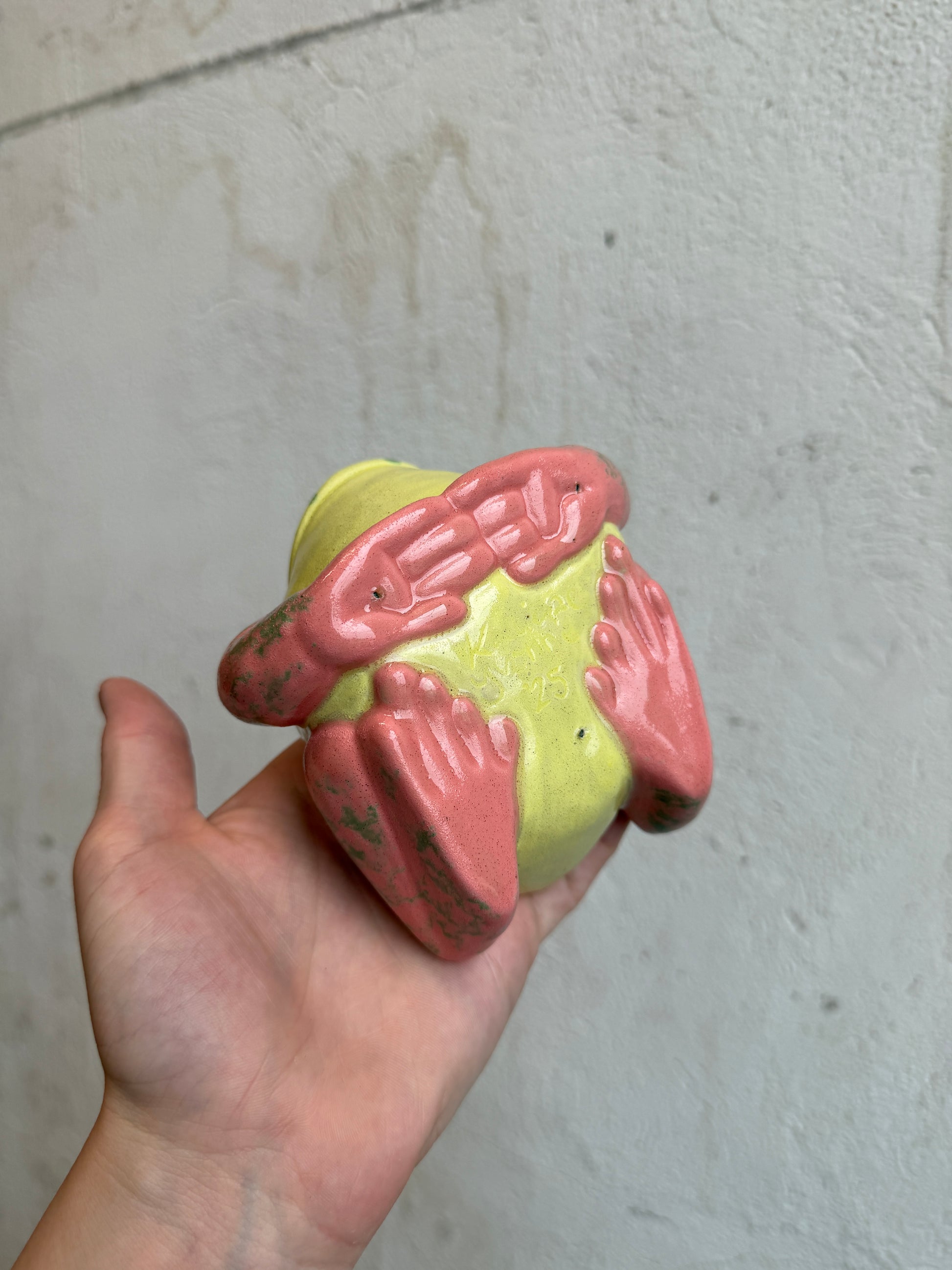 I document each piece of pottery and its condition before it leaves for its new home. I pack each item very carefully with ample cushion, double boxes, and "Fragile!" stamps on the parcel. I am not responsible for damages that occur through shipping and delivery. I insure every package I ship! If you receive a broken frog, please contact me immediately and keep all packaging!